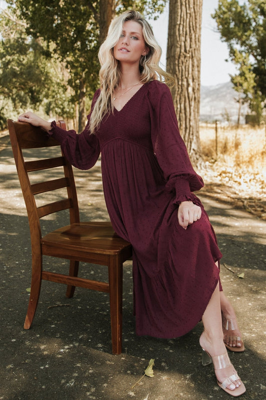 Lainey Smocked Dotted Midi Dress | Mulberry
