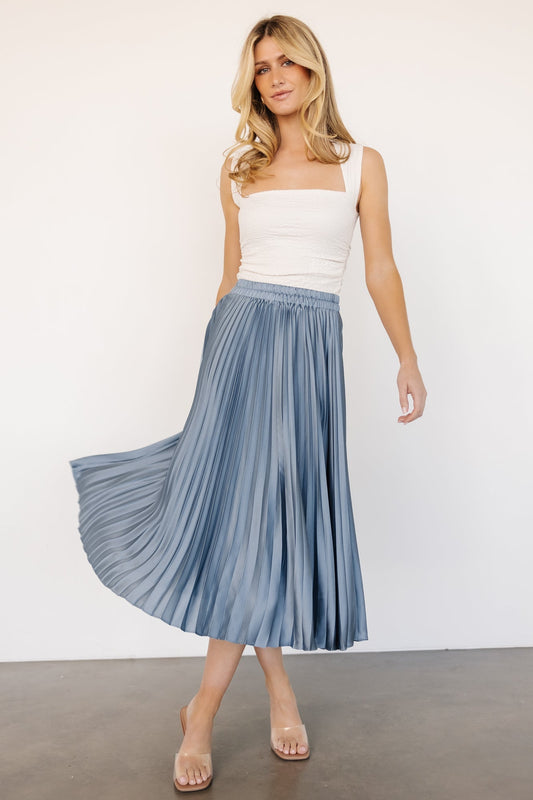 Demetria Pleated Midi Skirt | Steel Blue